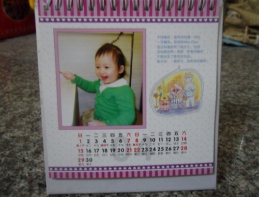 第一次光顧有福網(wǎng)。按照網(wǎng)站提示,一步步的選模版操作等,很快,一個(gè)小時(shí),我就把個(gè)性臺(tái)歷模版給做好了,因?yàn)槲疫x的這款是簡(jiǎn)易型的,圖片比較少,所以很快的就提交了,沒(méi)幾天就收到了,真的很快,而且個(gè)性臺(tái)歷的質(zhì)量也不錯(cuò),雖然小了點(diǎn),但是攜帶很方便,而且不占地方,給老公放在他平時(shí)工作的辦公桌上,他說(shuō)工作閑余時(shí),可以看看他的寶貝女兒,看到女兒的天真的笑臉,就有一股用不完的動(dòng)力,促使著他努力工作賺錢(qián),給女兒更好的生活。