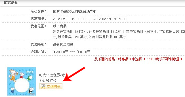 3、制作完照片書(shū)后請(qǐng)勿急于下單,繼續(xù)制作時(shí)尚個(gè)性臺(tái)歷7寸,制作完成后即可對(duì)照片書(shū)進(jìn)行下單,然后在優(yōu)惠活動(dòng)中對(duì)剛剛制作好的臺(tái)歷7寸選擇立刻購(gòu)買(如下圖),即可0元得臺(tái)歷!