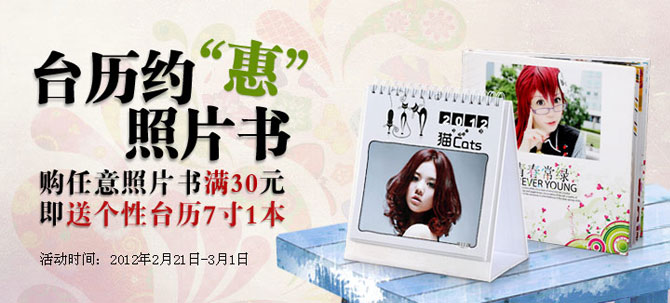 照片書(shū)滿30元即可0元得時(shí)尚個(gè)性臺(tái)歷7寸!