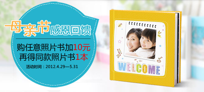 10元得照片書--購(gòu)任意照片書(點(diǎn)擊查看照片書產(chǎn)品)1本加10元可再得同款照片書1本 多買多得!(10元活動(dòng)價(jià)不可累積享受,購(gòu)1本得1本。不可購(gòu)1本加20元得2本,諸如此類不在本次活動(dòng)優(yōu)惠范圍內(nèi))