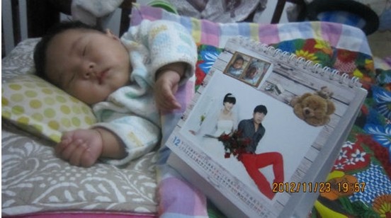 本來我想給我和老公結(jié)婚照做成個性臺歷以做留念的,可是現(xiàn)在我的寶寶出生了,于是只好忍痛割愛了,把寶寶剛剛出生到現(xiàn)在有意義的照片做成了這本臺歷