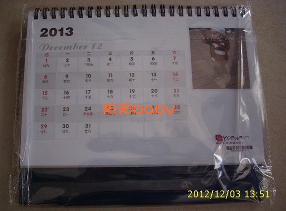 按月份來,一月很冷,我就選了張寶寶穿的很厚實(shí)的照片。6、7月份很熱,放了張洗澡澡的裸照。在新年、和他生日的月份送上了我這當(dāng)媽的祝福,希望兒子能喜歡喔~
