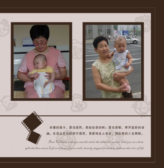 寶寶二歲三個月了。一直想把他的生活照洗成相片保存,爺爺奶奶總覺得在電腦里面看電子版的不方便,3月29日我就在網(wǎng)上搜了搜,想看看哪家洗的便宜。呵呵,還真搜到了,網(wǎng)址是http://www.enjoythepatio.com/?u=491116。在這里洗相片5寸的才0.35元一張,6寸的也才0.45元一張(洗40張還送柯達(dá)小相冊),科學(xué)技術(shù)發(fā)達(dá)的今天還真是方便,趁中午吃飯的時間我瀏覽了網(wǎng)頁并制作了相片書,上傳了要單洗的相片,一本照片書就完成了。更讓人吃驚的是,第二天一早,對方就跟我聯(lián)系了。說照片書已經(jīng)完成,今天就可以快遞過來了。抱著試試看的態(tài)度期待著拿到相片再看看效果,沒想到3月30日下班前我就收到照片書了。我做的是8*8的精裝照片書,最主要的是照片書上有各種效果還可以加上字,真的很棒,同事們看了都說好,紛紛跟我要網(wǎng)址也要制作呢。哈哈,這次體驗(yàn)是成功的,以后我還會繼續(xù)使用。 大家看看效果,實(shí)物比相片要好看。本人照相技術(shù)一般。見笑!