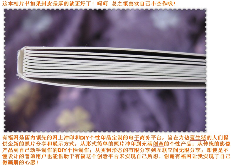 慕橙平時(shí)喜歡把家人和自己的照片進(jìn)行整理和歸類(lèi),曾經(jīng)好多的照片都拷在了我的移動(dòng)硬盤(pán)上,可是去年把移動(dòng)硬盤(pán)借給朋友,不幸的丟失了!很是煩心,哈多照片都是無(wú)備份的啊!從那以后慕橙更加小心翼翼每張照片!之前自己還經(jīng)常在淘寶上找制作相片書(shū)的店,想著把我現(xiàn)有的照片都制作在一本書(shū)里。
