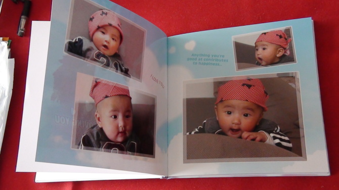 我家寶寶百天了,給她拍了許多照片,準(zhǔn)備沖印出來,但家附近的沖印點質(zhì)量不好,因此想到了網(wǎng)上沖印。在google上搜索了一下發(fā)現(xiàn)了有福網(wǎng),同時還發(fā)現(xiàn)了照片書這樣?xùn)|東。照片書很吸引我,可以隨心所欲的制作相冊,添加文字,而且價格也很實惠,恰逢有福網(wǎng)五一搞活動,買一送一更是讓熱心動,于是決定嘗試一次。從有福網(wǎng)上下載了專門的軟件開始制作第一本照片書,軟件很好用,一學(xué)就會,提供的模板也很漂亮,最好的地方是它有在線咨詢,有什么不明白的馬上可以問,立即就能解決。做照片書的過程很愉快,完成了自己的作品很有成就感,立刻下了訂單,期盼早日送貨,商家制作發(fā)貨速度很快,我12日下的訂單,今天就到貨了,而且東西也很不錯,下次我就不印照片了,直接做照片書,既美觀又經(jīng)濟。來看看我的作品吧!