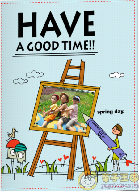 我選的這個(gè)模板是QQ版,走可愛路線,配上小朋友的相片,效果挺好的。我相信如果用專業(yè)相機(jī)拍的相片,出來效果將會(huì)更美!