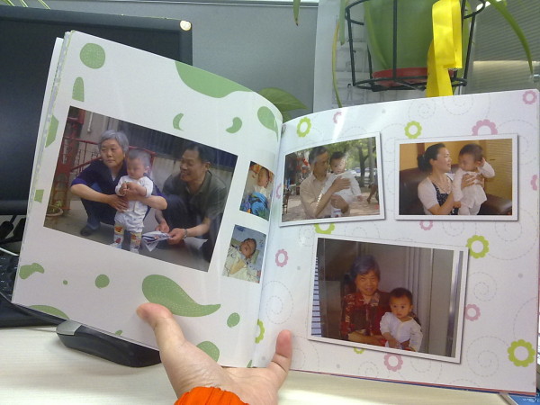 想讓所有的親人都能看到寶寶的成長過程,所以媽媽特地利用好幾天午休時間,精心制作了照片書,從寶寶剛出生,滿月,百日,回外公外婆家,會趴,學(xué)坐,學(xué)爬,回家看爺爺奶奶,每一個成長的時間點,都精選一些照片,有的模板允許還加了簡單的文字說明.