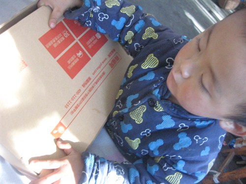 寶貝迫不及待地開著快遞,很是喜歡這個臺歷呢!喜歡海綿寶寶,也喜歡摘蘋果的自己……