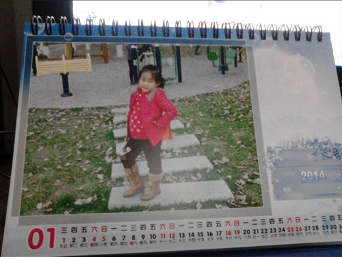 我趕緊掏出手機,“咔、咔”拍了幾張后,打開了包裝紙,熟悉的底色---藍(lán)色馬上映入眼簾,跟去年的一樣,一直以來,還是特別的喜歡有福網(wǎng),因為他們的制作水平相當(dāng)?shù)母撸掌Ч邦伾继貏e的好。這種八寸雙面臺歷采用的是雙面印刷的,正面是大圖設(shè)計,美觀又直觀大方,反面是大日歷小圖設(shè)計,方便查看日期,它的頁數(shù)一其是12張(24頁),紙張是250G銅版紙,制作工藝是惠普Indigo印刷,裝訂方式也很特別,是采用可折疊紙板底座,YO圈裝訂,精致又牢固的同時,也特別的容易方便翻頁。說了這么多,還是來看看我用美圖制作的臺歷照片吧!