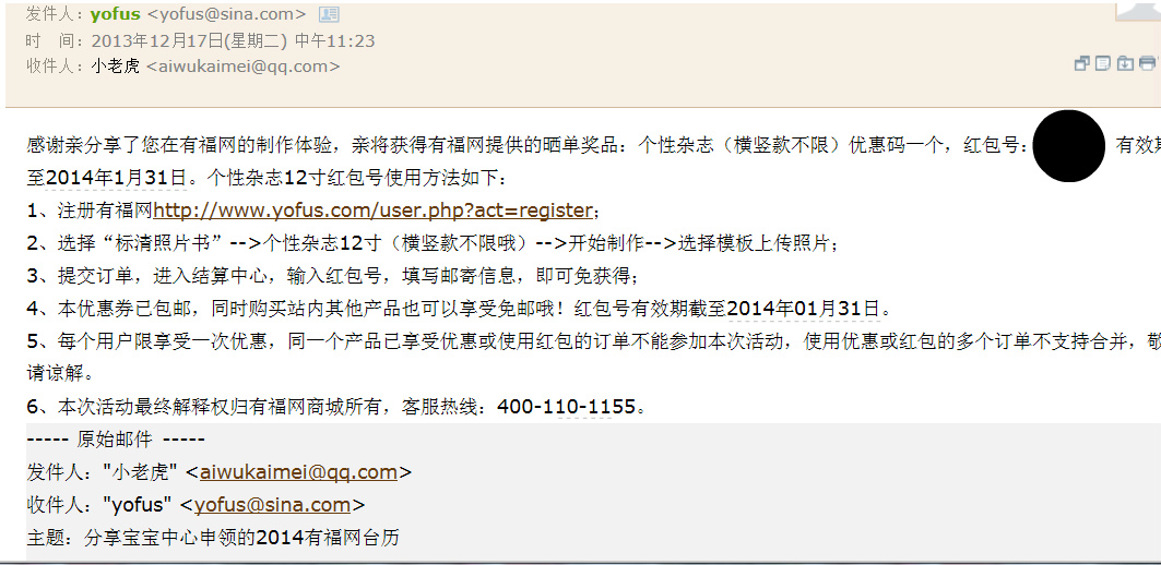 早上一覺醒來,電話就噠噠的響,看看原來是來短信了!真是個讓人意外的驚喜??!這兩天一直和寶寶中心的媽媽們在探討這個問題呢?那么多天了也不知道是什么原因沒有收到有福網(wǎng)免費贈送的個性雜志優(yōu)惠碼??赡苁且驗樘绷?,在8天后的今天收到了這份禮物。等過幾天我給Amy拍了2歲生日照片,就把這個給Amy做一個2歲生日紀念,期待我的成果吧!