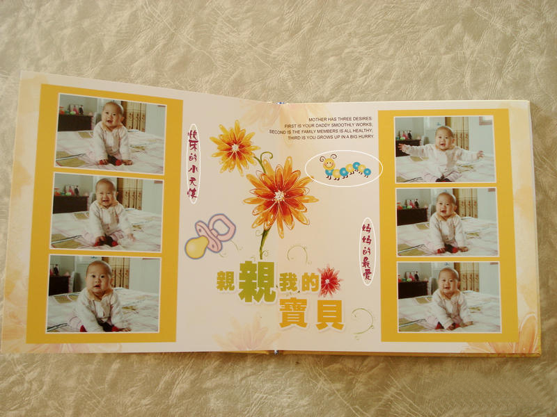我花了一天的時間(空閑時間)把照片書做好了,很喜歡里面的很多小細節(jié),之前很多親也說到過的,可是自由的搭配一些文字和一些小裝飾,我做相冊的時候是充分的用到了這一點,感覺非常的好。