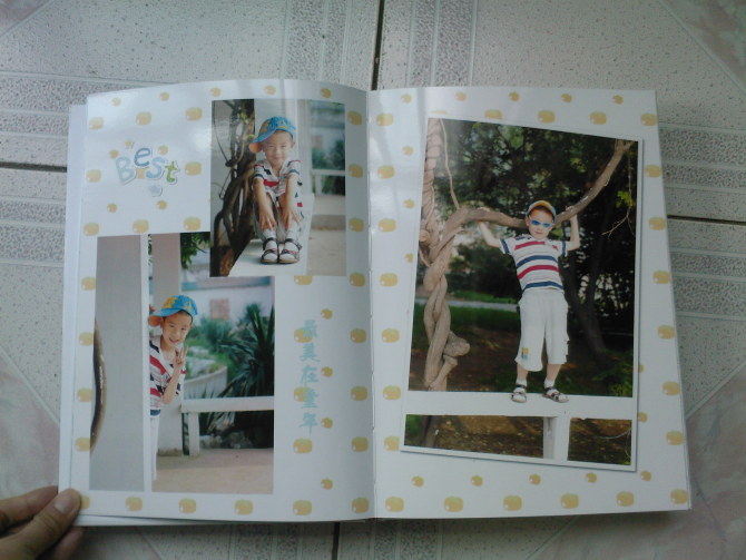 照了不少照片,有四十多張,這次我們選擇在有福網(wǎng)上給他DIY做了一本相冊。把自己喜歡的照片全都放了進(jìn)去,不用向以前在攝影店里擔(dān)心超出套系數(shù)量還要額外補(bǔ)錢,呵呵。而且大姨的DIY 水平很高,做出來的相冊真的很漂亮,印刷裝訂都很專業(yè),而且只要一百多塊錢,真是超值!