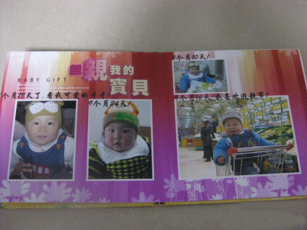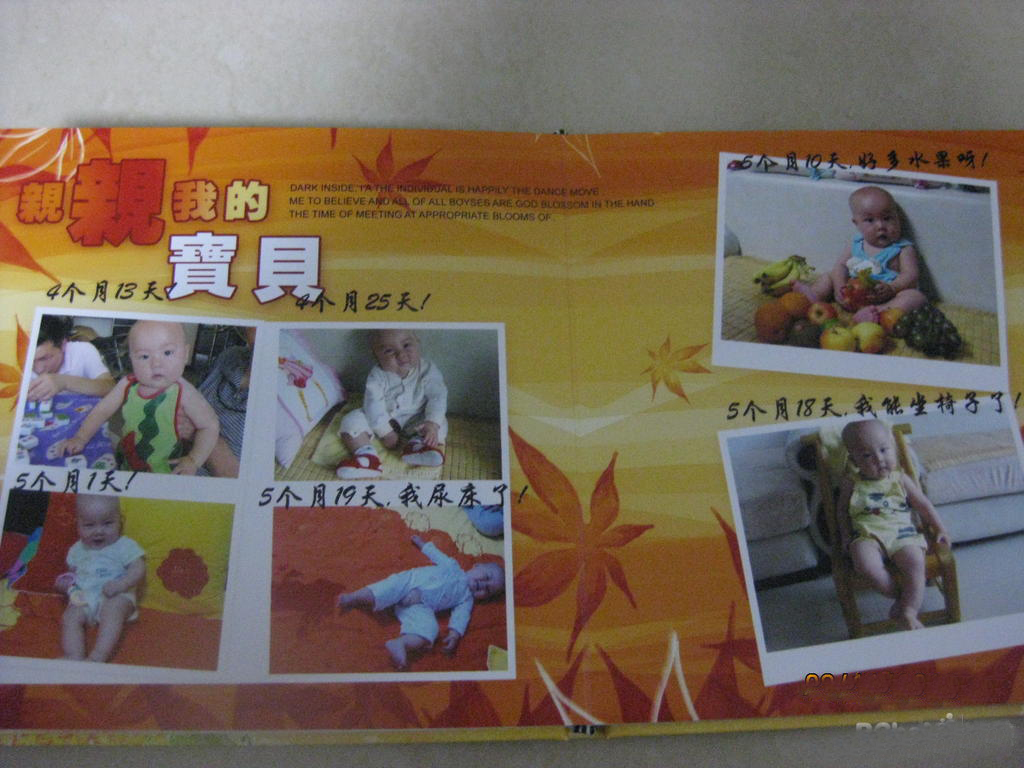 做這個(gè)相冊(cè)對(duì)我來(lái)說(shuō)不是很難,因?yàn)橹拔乙呀?jīng)在有福網(wǎng)上學(xué)習(xí)了好幾遍了,呵呵。好幾個(gè)版本的相冊(cè),我選了一個(gè)色彩比較艷的,后來(lái)看到好多親都選的這個(gè)。我做這個(gè)相冊(cè)的主題是超超的成長(zhǎng),從超超開(kāi)始出生時(shí)我就給他留下了相片,我就打算做他的成長(zhǎng)相冊(cè),每個(gè)月都有他的照片,而且我還細(xì)心地注明他的月齡。經(jīng)過(guò)了下軟件,選相片,開(kāi)始DIY,查看效果一系列的工作,從晚上七點(diǎn)吃完晚飯開(kāi)始做直到超超睡著,我又接著做,到十一點(diǎn)多我才全部完成,第二天就提交了訂單,付款。接下來(lái)就是等待了。有福網(wǎng)的速度還真是快,本來(lái)我擔(dān)心在2月13日沒(méi)收到相冊(cè)不能寫(xiě)報(bào)告的,結(jié)果在今天早上我就收到了相冊(cè)。真是高興啊,我迫不及待地打開(kāi)包裝,呈現(xiàn)在我眼前是一本令我驚奇的相冊(cè),質(zhì)量好的沒(méi)話說(shuō),手感也相當(dāng)好,同事們看到都說(shuō)不錯(cuò),問(wèn)我多少錢(qián),我讓她們猜,都說(shuō)沒(méi)個(gè)一兩百做不出來(lái),等我說(shuō)出價(jià)格時(shí),她們都難以置信地看著我,大呼我真走運(yùn),呵呵。后來(lái)一個(gè)朋友還讓我給她的寶寶也做個(gè),我說(shuō)可能沒(méi)這個(gè)優(yōu)惠的活動(dòng)了,她說(shuō)沒(méi)有優(yōu)惠的活動(dòng)也比影樓里便宜啊。