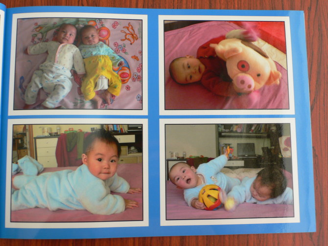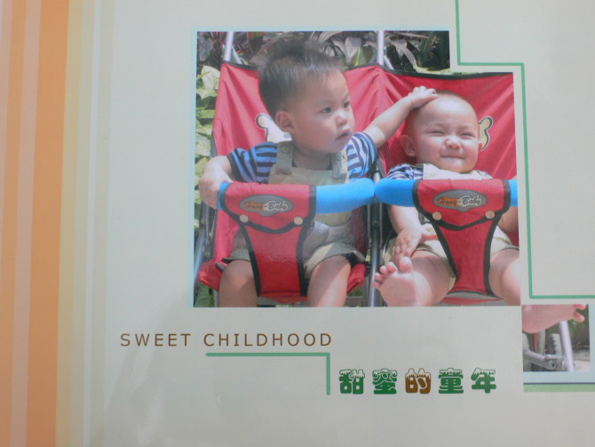 我精心挑選了80多張的照片,把兩個(gè)小寶寶從剛出生到一歲牙牙學(xué)語、姍姍學(xué)步的可愛樣子都包羅進(jìn)去。用“有福藝術(shù)家”軟件編輯著照片,回憶像放電影似的在眼前飄過:剛出生的兩個(gè)小寶寶,堪比兩只小貓貓;由于過敏體質(zhì),有時(shí)候一吃就吐,但在大家的努力下,兩個(gè)小寶寶長(zhǎng)得有模有樣了;抬頭、翻身、坐起、爬行、學(xué)走路……一笑一顰,牽動(dòng)家里每個(gè)人的心。封面的那張照片,最能反映兩個(gè)小寶寶成長(zhǎng)得不易了:天才開始暖和,細(xì)細(xì)還是頭發(fā)旺盛,而大大則是個(gè)大光頭了,為什么?大大因?yàn)槟谭圻^敏,住院了,頭皮針已無處可扎,只能剃頭了……孩子痛,大人的心更痛。這之后,我們努力尋找適合他的奶粉,現(xiàn)在寶寶才健康了。有福網(wǎng)的編輯功能真好,連圖片的插畫也能剛好反映照片的主題,我愉快地把這些照片編輯好,上傳——訂購(gòu)——等待——三天接到送貨的電話……嘩,真漂亮。全家人看著這本相冊(cè),滿意極了,照片不但曬得很清晰,而且還免除了一張張照片放入相冊(cè)的麻煩,很好保存,而且價(jià)錢也不貴,一本相冊(cè)有80張照片,連運(yùn)費(fèi)才不過51.94元。“真棒!”姨婆拿著相冊(cè),笑不攏口了!
