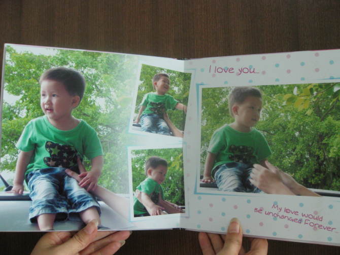 不知不覺(jué),兒子已經(jīng)兩歲了,從一個(gè)襁褓中的小嬰兒到現(xiàn)在一個(gè)小大人似的,會(huì)跑、會(huì)說(shuō)、會(huì)唱歌,還會(huì)和媽媽斗嘴了,可我還沒(méi)曬過(guò)他的相片呢。好多朋友都說(shuō)還沒(méi)見(jiàn)過(guò)我兒子呢,讓我寄些相片給她們解解饞,我就是一直拖著。因?yàn)槲矣X(jué)得到外面的相館洗出來(lái)的相片沒(méi)什么特別,自己用PHOTOSHOP做吧,又很麻煩。廣州的一個(gè)同學(xué)年初的時(shí)候就介紹自己上有福網(wǎng)曬相,做相冊(cè),既漂亮又劃算!我抱著將信將疑的心態(tài),前陣子就試著在上面做了一本照片書和兩套明信片。第一次做相冊(cè),手腳有點(diǎn)笨,自認(rèn)為效果不怎么樣,誰(shuí)知道相冊(cè)一拿到手,效果竟是這么好,出乎我的意料!原來(lái)自己兒子這么上鏡,呵呵!趕緊把那些明信片寄給好友們,讓她們也分享一下自己的喜悅!我還把兒子的相冊(cè)拿給同事們看了,大家都說(shuō)效果真好!都問(wèn)我在哪做的,這么漂亮。我立即介紹她們上有福網(wǎng)去做。有福網(wǎng)的軟件真的很方便,很多模板提供選擇,省時(shí)省力,效果還很不錯(cuò),很有紀(jì)念意義。我還準(zhǔn)備把兒子從出生到現(xiàn)在的相片都給做成相冊(cè),好好收藏,作為他成長(zhǎng)的一個(gè)記錄。和大家分享一下我兒子的相冊(cè).jpg)