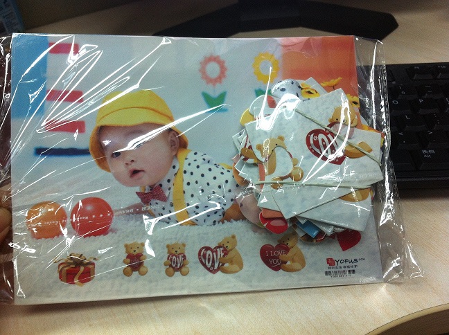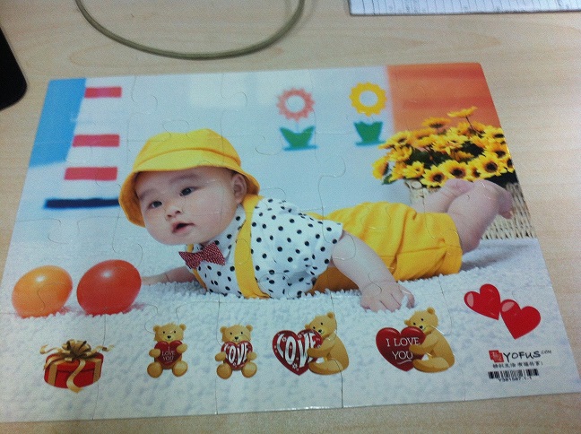 后來(lái)在有福網(wǎng)用兒子的照片定制啦一套個(gè)性拼圖,當(dāng)他看到的時(shí)候樂(lè)呵呵的.當(dāng)天晚上兒子把兩個(gè)拼圖都玩會(huì)了,讓我沒(méi)想到得是,第二天早晨,一起床,就自己跑去玩拼圖了,而且這次很順利,速度也很快。