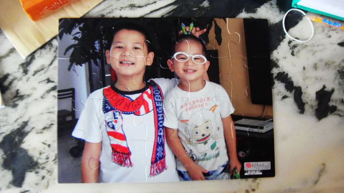 下面一張是現(xiàn)代版的兩兄弟,是不是長大了,一個長胖了,一個還是像猴子一樣。很棒的產(chǎn)品,大愛哦,如果要給予評分,當然五星少不了,親身體驗的感覺真不錯,再次謝謝有福網(wǎng),很開心的說這次非常有意義的個性定制拼圖!
