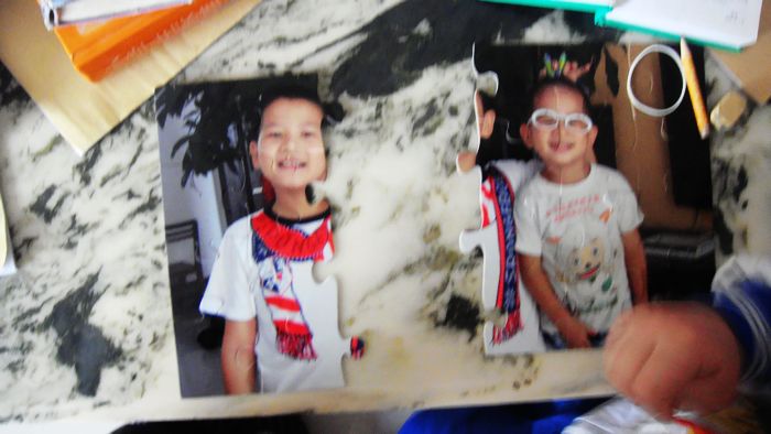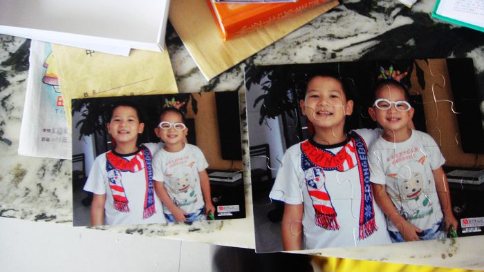 上面這一張是我特意把他給整開的,來顯示一下這個性拼圖的融洽度,沒錯,很有紀念意義的,給孩子們留下最美的笑容,永遠的刻在我的腦海里,下面這兩張是原本的照片和拼圖,像素還是不錯,沒有模糊或者很粗糙的感覺,就跟一般照片似的清晰,以前一直想做一張他們的海報,但每次我發(fā)出去的照片別人都說不行,要專來攝影棚里的才可以,所以一直沒有完成自己的心愿,這一次終于滿足了那么一點了,好帥的一天!祝福兩寶貝永遠都這么開心健康地度過每一天!