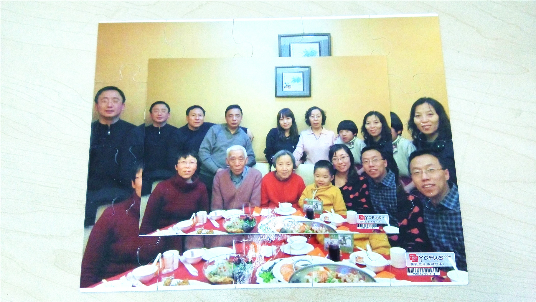 同事們認為這也挺新鮮的事情,家里的懷舊全家福照片還是能成為有趣拼圖。個性拼圖送給媽媽或者小孩子都是一份特別的好禮物。正是因為這個原因,我才選擇了拼圖為禮物。最近發(fā)現(xiàn)媽媽特別喜歡拼圖,之前喬喬(家里小孩)小時候玩的拼圖送給媽媽,她也玩得不亦樂乎。不過那些拼圖達到1000張以上,對于喬喬和我來說是還能應(yīng)付,這復(fù)雜過程和需要耐心的拼圖,對她來說,真不太適合。二十塊全家福就真適合媽媽來拼,她可以一邊動動手指筋骨拼圖,一邊想念天各一方的兒女子孫。