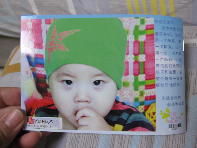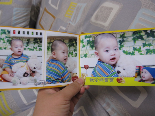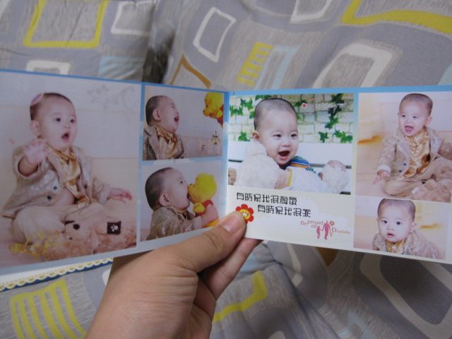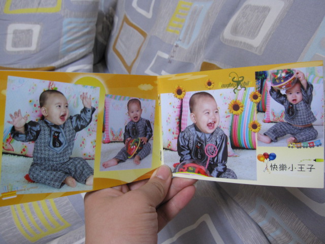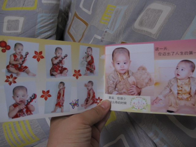 我兒子提前拍的周歲照片,要了42張底片,但是只有15張入冊,我就自己做了一個小冊子,6寸照片那么大,15頁,都設(shè)計進(jìn)去了,還是覆膜的,不怕變色,只要10塊錢,教師節(jié)活動還可以加2元做一個賀卡,剛好給兒子做了一個周歲生日卡片,拿到了竟然有8寸照片那么大,還真好看啊!