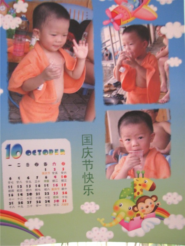 順便也附上我去年在有福網(wǎng)做的源源掛歷,這張是10月份的,因現(xiàn)在是10月份,家里也是翻到這一頁。