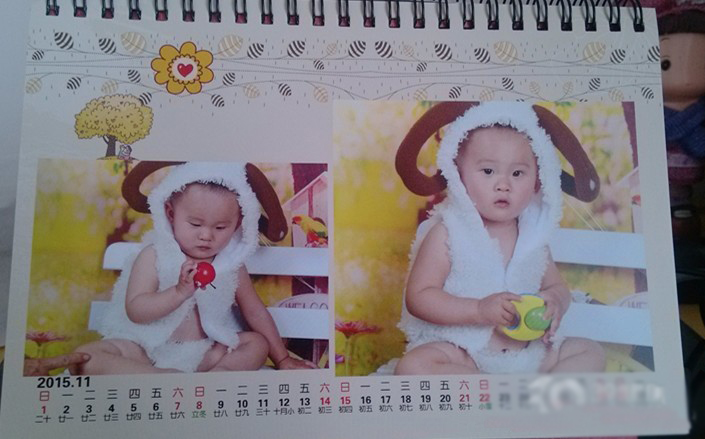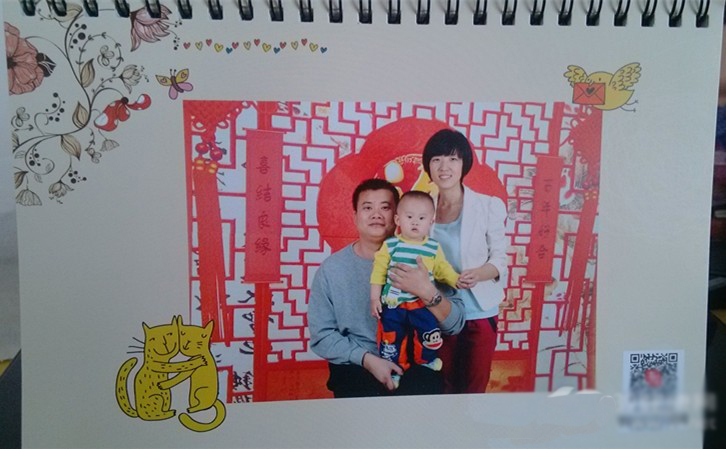 臺歷紙張很好,顏色為大紅色,封面我放的是全家福,背景也是紅色的,很搭配呢。印刷的圖片很清晰。 可以直接站在桌面上,用起來很方便 。既能看日歷,又能看到照片,擺在擺臺上,既美觀又實精美有紀念的臺歷用。自己親手制作,很有紀念意義,是值得珍藏的一份臺歷。