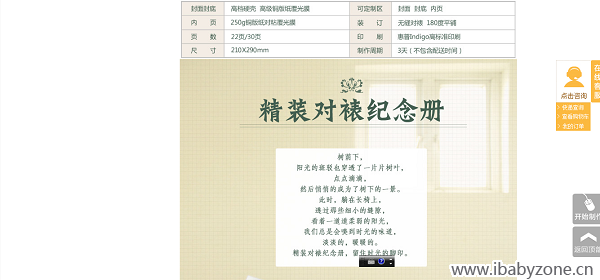 在有福網(wǎng)上制作相冊(cè)高效快捷、步驟非常簡單,這次的活動(dòng)是精裝對(duì)裱豎款紀(jì)念冊(cè),210mmX190mm,共有22頁,我和兒子共同制作,整個(gè)過程充滿樂趣,增進(jìn)親子關(guān)系。下面我就和大家分享下制作心得:
