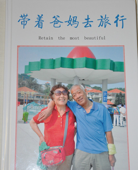 我給這本相片書起名叫——帶著爸媽去旅行,寓意很明了。封面選了這張合影,這是廈門的鼓浪嶼下船的廣場上。老爸親密的摟著自己的老伴,笑容是那么的甜蜜。