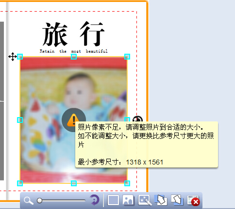 添加相片時我有點疑問,就是同樣都是單反相機(jī)拍出來的相片可當(dāng)你添加到頁面里的時候,它會提示你說相片的像素不足,請調(diào)整到合適的大小,如果不能調(diào)整請更換像素合適的相片。遇到 好幾張這樣的相片,讓我很遺憾的沒有把想如冊的放到相片書里面去。不知道其他的親們在制作的過程中遇到過類似的問題沒有呢?