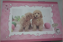 給家里的兩只小泰迪做了一本紀念冊,記錄著它們生活的點滴,非常有愛的小泰迪!這本冊子的質(zhì)量不錯,裝訂也挺精美的,內(nèi)頁的紙張也不是普通的紙,介紹說的好像是德國的古樓紙,雖然不是特別了解,色彩非常的飽滿!