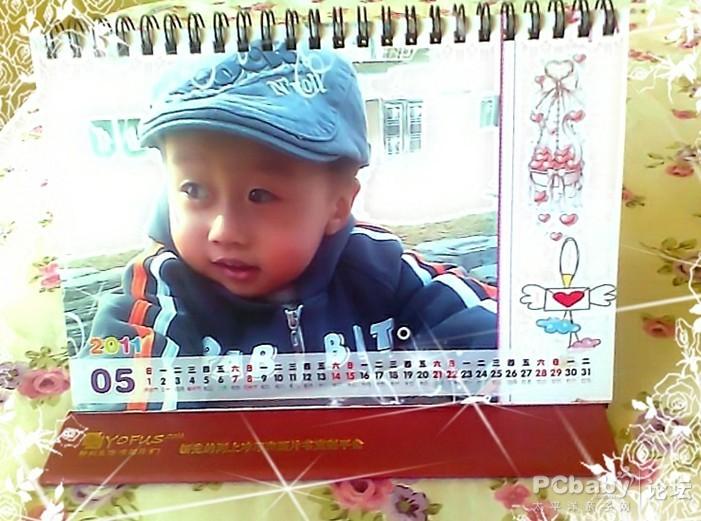 兒子很喜歡這本臺歷,以后可以一直做到他兒子出生。對了有一點要注意的是,邊邊留得少了,圖案有些被YO圈壓到,有些破壞畫面,不過重點部位還是沒問題的。下次注意就好了。