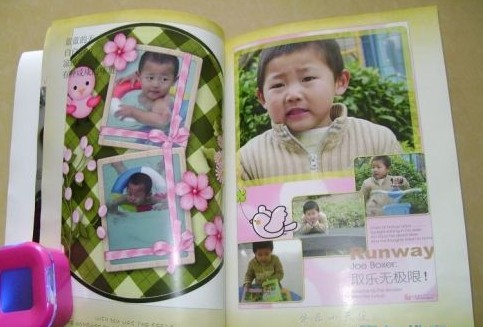 為了讓豬寶寶的個(gè)性雜志達(dá)到最佳效果,于是請(qǐng)了同事幫忙PS了下照片,這樣照片數(shù)量無(wú)形中增加了,挑選的大部分是最近的照片,上周一拿到,發(fā)現(xiàn)真的很漂亮,美中不足的是因像素不高,導(dǎo)致有些照片很模糊。