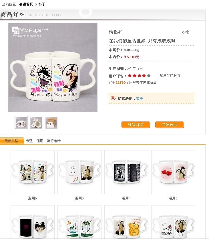 9月22日我特地上有福網(wǎng)花了打幾個(gè)小時(shí)時(shí)間終于定做完成了屬于我和老公一家的個(gè)性杯子。不過過程對(duì)于我這個(gè)辦事效率很拖拉,理解能力很差的人來說真是個(gè)不小的挑戰(zhàn)。不過全程中我和客服電話聯(lián)系了將近5次吧,那位客服人員說話很細(xì)膩,態(tài)度很溫和,我很喜歡,贊一個(gè)。以下是過程: