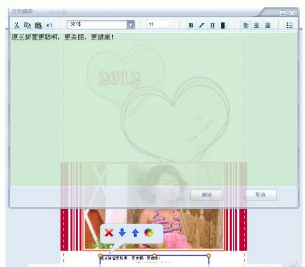 7、然后還可以設(shè)置自己喜歡的文字。文字也是可以編輯的喲,顏色,字體,位置等都是和大家常見的格式編排一樣的,所以很容易上手。