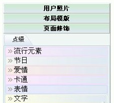 9、等把照片都放好后,可以再根據(jù)自己的需要在左側(cè)設(shè)置頁面修飾,呵呵,里面的分類可真多呀。