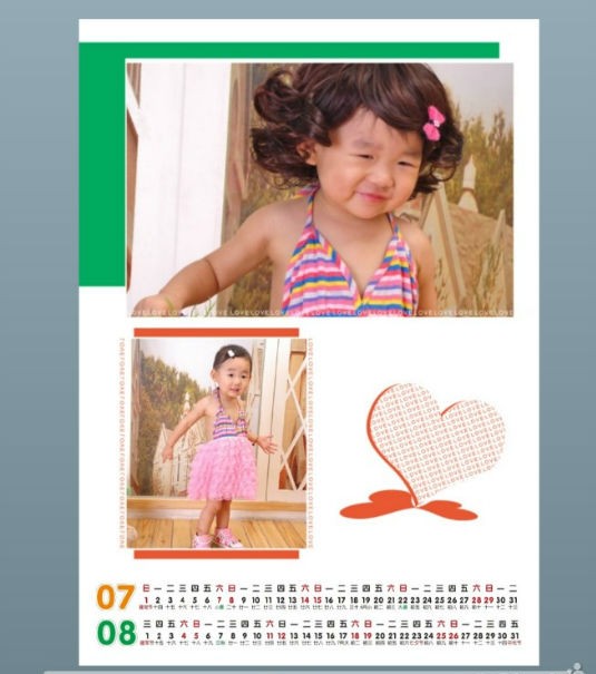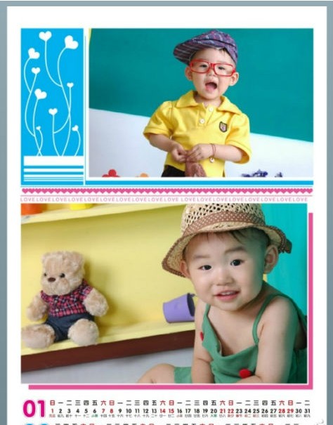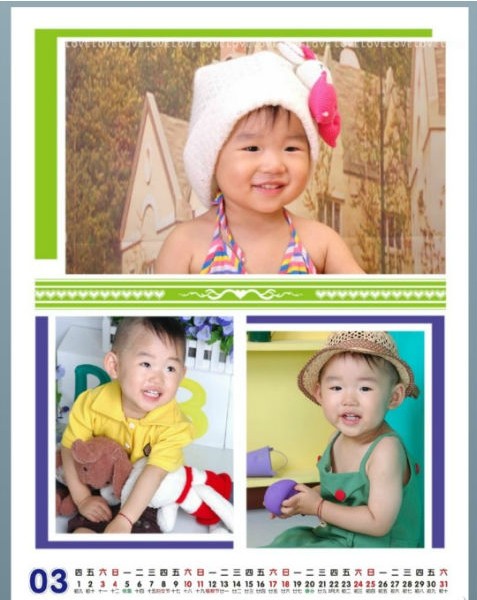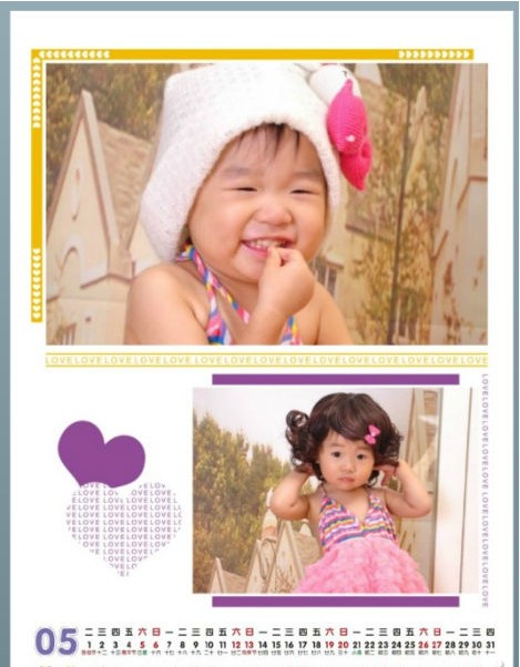 看,這就是我做的掛歷喲,簡潔大方,雖然是給牛妞做的,我覺得太花哨了也不好,所以明了的樣式反倒突出的牛妞的童趣和可愛。
