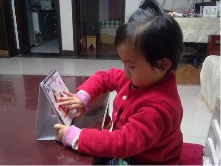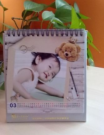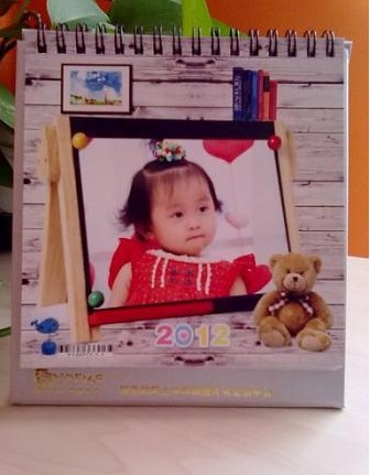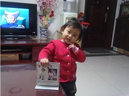 貝貝看到后,很是喜歡,小手翻來翻去的,還要和新臺歷照相,呵呵!