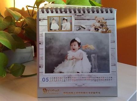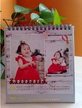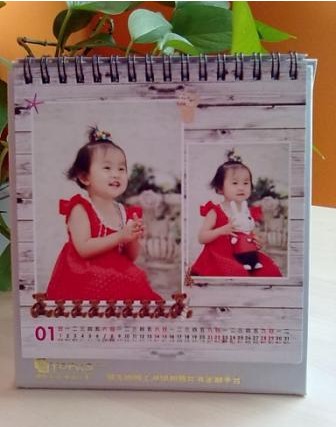 這個臺歷是13張單面的,除了13張大照片外,內頁還能添加小照片,我的這本臺歷放了24張照片呢。