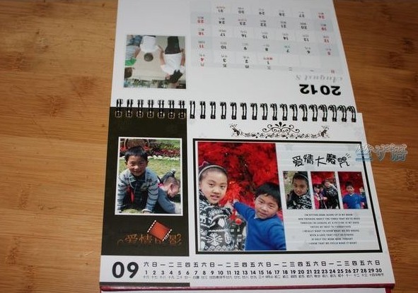個性臺歷8寸的,就想著給父母做一個。平時不管是我家的孩子,還是我哥家的孩子,都要周末才會有時候去我父母家,因為我哥也不是跟我父母住一起的。所以呢,想做這樣一個臺歷,這樣每天老人都能翻翻。因為臨時想到做的,我電腦里,侄女和侄子的照片也不多,我就用了幾張我父母的照片,有幾張給他們拍了還沒沖印出來。這會做臺歷就幫他們做過進去得了。